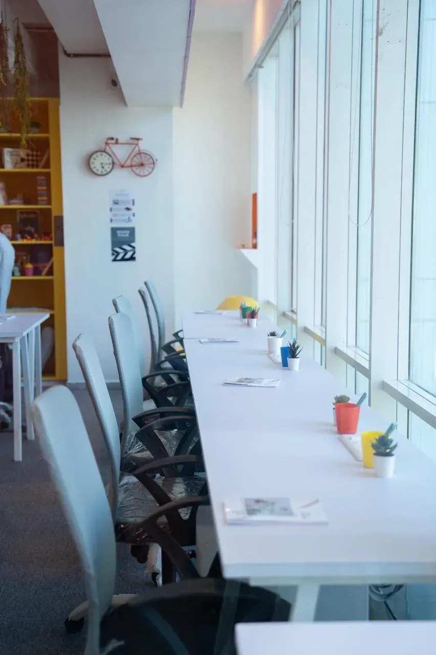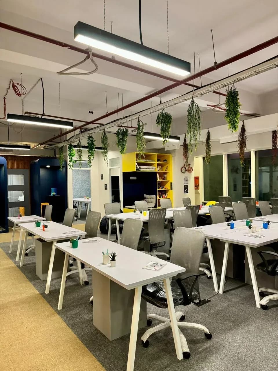Every detail of Synergy has been designed to keep you in the zone — from the hanging greenery that softens the open floor to the floor-to-ceiling windows that frame a Mumbai skyline view. It's a workspace that inspires by design.